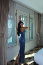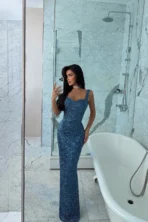 Bëhuni i pari që shqyrton “Fustan blu pa rrip me detaje ATE-3227”