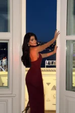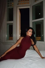 Fustan i gjatë Doria në ngjyrë gështenjë vishnje ATE-3614