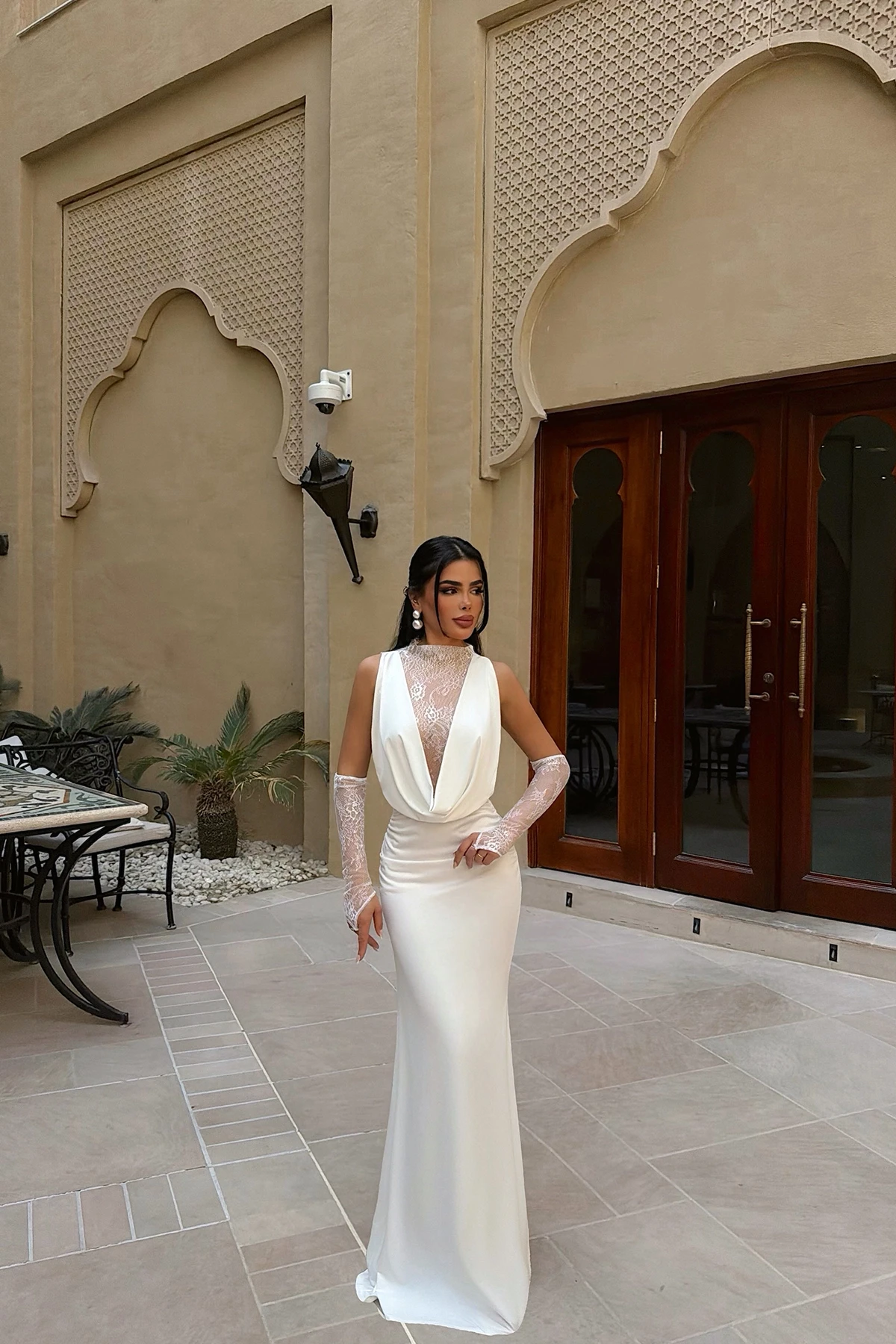 Fustan i gjatë me dantella të bardha