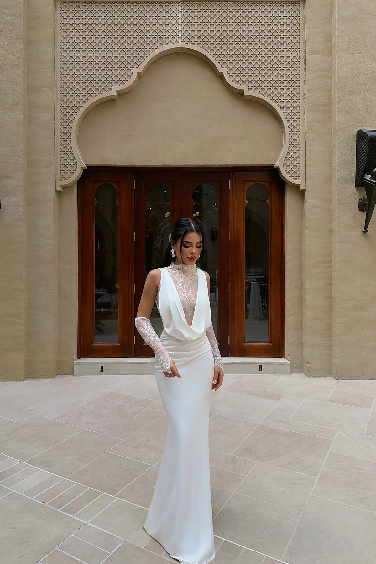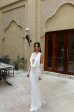 Fustan i gjatë me dantella të bardha ATE-4721