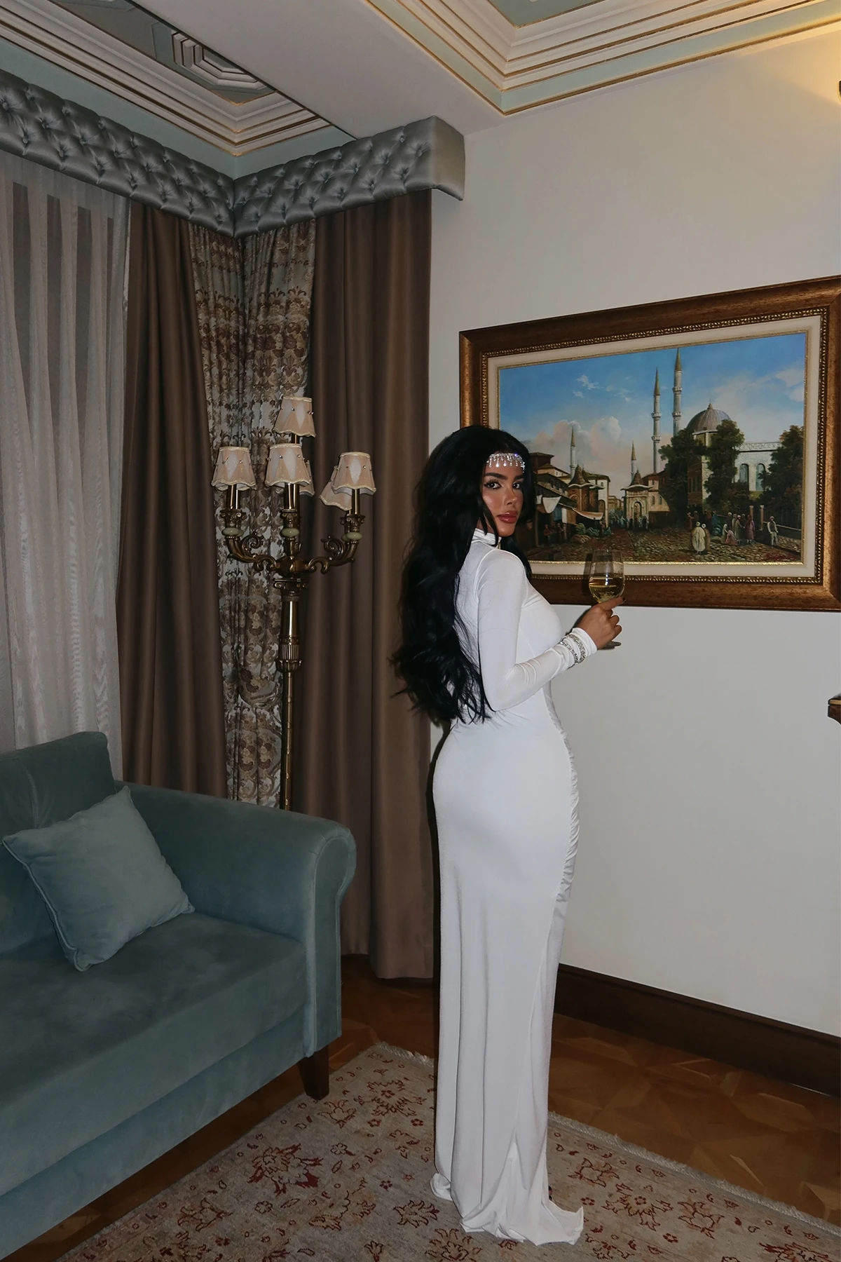 Fustan i gjatë me Detaj Trëndafili të Bardhë