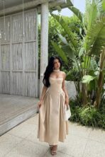 Cream Strap Long Dress