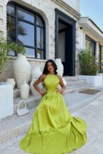Fustan jeshil sateni i hapur prapa ATE-1229