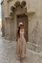 Fustan midi me qafe bezhe ATE-4750
