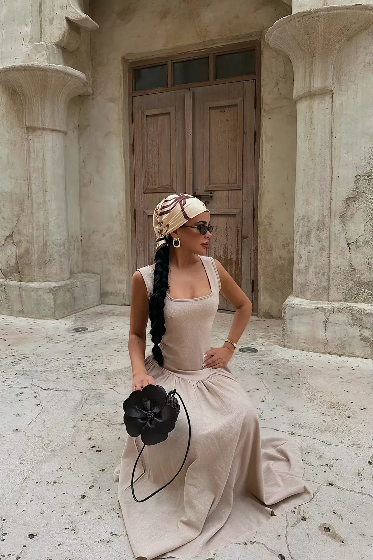 Fustan midi me qafe bezhe