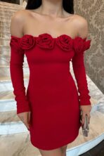 Mini fustan i kuq me detaje trëndafili ATE-0839